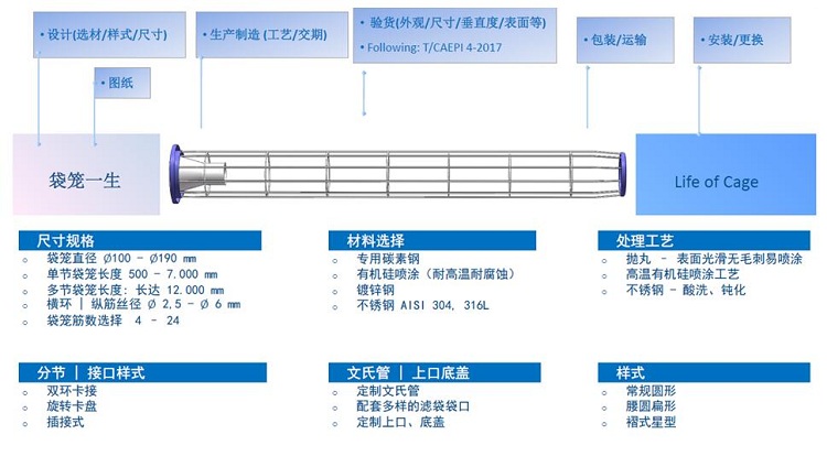 水泥行業(yè)袋籠的選擇:高溫有機(jī)硅噴涂袋籠、鍍鋅袋籠、不銹鋼304袋籠