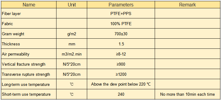 2. Combinado con PPS, las ventajas de dos fibras de PTFE mejoran efectivamente el filtro PPS. Resistencia a la corrosión, resistencia a la oxidación.