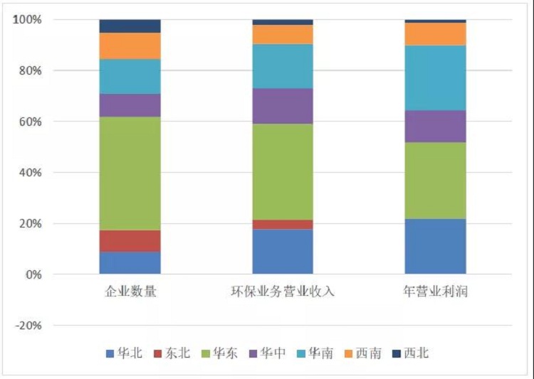 2020年列入統(tǒng)計的企業(yè)中,小微型企業(yè)占比為72.9%,大、中型企業(yè)占比分別為3.1%、24.0%。其中,大型企業(yè)貢獻(xiàn)了超過行業(yè)80%的營業(yè)收入和營業(yè)利潤。大、中型企業(yè)營業(yè)收入和利潤同比均保持增長,小微型企業(yè)則雙雙出現(xiàn)下滑,且呈現(xiàn)企業(yè)規(guī)模越小,降幅越大的特點。反映出當(dāng)前我國環(huán)保企業(yè)仍以小、微型企業(yè)為主,產(chǎn)業(yè)集中度較低;與大中型企業(yè)相比,小微型企業(yè)受新冠疫情和經(jīng)濟波動的影響較大。
