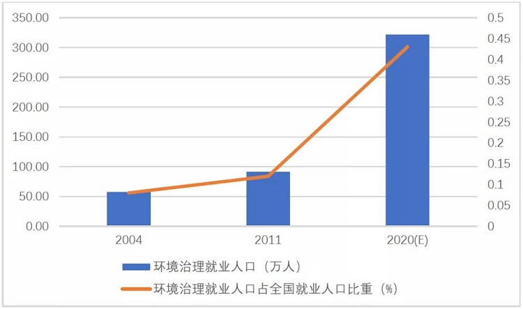 圖2 環(huán)境治理就業(yè)人口及占全國就業(yè)人口比重