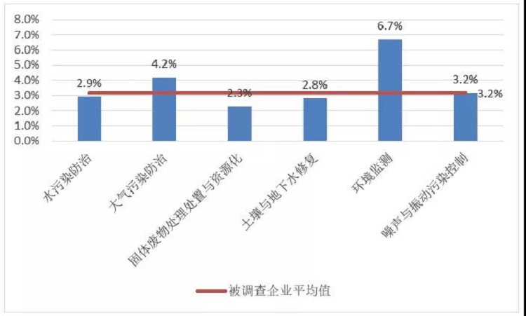 2020年環(huán)保企業(yè)平均研發(fā)支出同比增長16.8%,研發(fā)支出占營業(yè)收入的比重為3.2%,高于2020年全國規(guī)模以上工業(yè)企業(yè)研發(fā)支出占營業(yè)收入的比重(1.41%)。其中,環(huán)境監(jiān)測領(lǐng)域研發(fā)支出占營業(yè)收入的比重最高,達(dá)6.7%。研發(fā)人員數(shù)量占從業(yè)人數(shù)的比重為17.1%,同比增長0.6%。企業(yè)平均專利授權(quán)數(shù)從2019年的4.5件增長到4.8件。