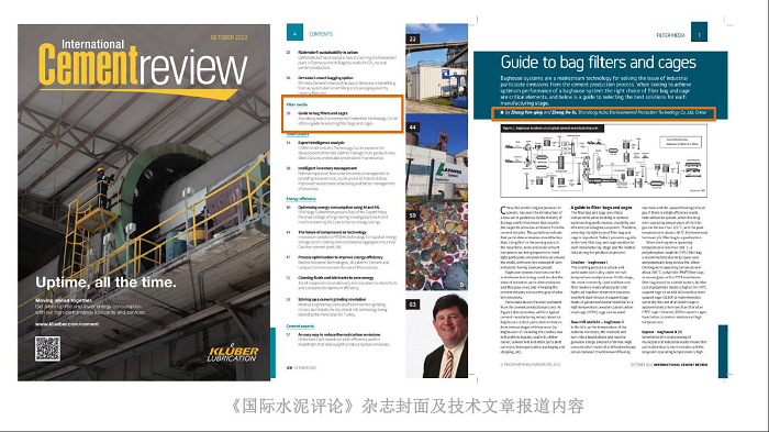山東奧博環(huán)保公司提供的技術(shù)文章“水泥行業(yè)濾袋和袋籠選用指南”引起了國內(nèi)外水泥行業(yè)的關(guān)注,成功入選英國《國際水泥評(píng)論》雜志第10期,這是《國際水泥評(píng)論》本期期刊中唯一在列的中國技術(shù)文章。全球水泥行業(yè)最具權(quán)威性的主流媒體的肯定,意味著山東奧博環(huán)保的提供濾袋與袋籠技術(shù)進(jìn)入新的高度,引領(lǐng)水泥收塵行業(yè)的過濾技術(shù)發(fā)展。