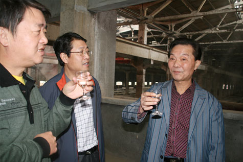 9月10日,在枝江酒業(yè)的新釀造車間,筆者看到一片忙碌的景象:即將出甑的甑鍋“霧氣騰騰”,首批50名釀酒工開(kāi)窖取糟——加料拌合——裝甑蒸餾等各道生產(chǎn)工序井然有序地開(kāi)展,8輛行車各就各位,馬家…