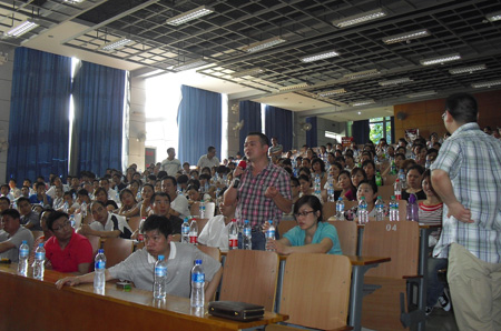 5月30日,枝江酒業(yè)駐武漢的全體工作人員與市區(qū)及周邊商家、酒店商超促銷直銷員、商家業(yè)務員等300多人在中南農(nóng)業(yè)大學報告廳舉行“喝五星枝江-…
