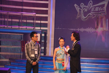 舞臺(tái)上的張翠華、李玉剛和李詠 3月21日晚,枝江酒業(yè)員工張翠華順利通過央視“非常6+1”節(jié)目的現(xiàn)場(chǎng)錄制,于22日下午回到枝江。在公司同…