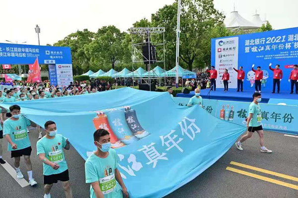 5月5日上午2021湖北長江超級半程馬拉松在鄂州市枝江市石首市嘉魚縣巴東縣5地同時鳴槍開跑 這是湖北省疫…