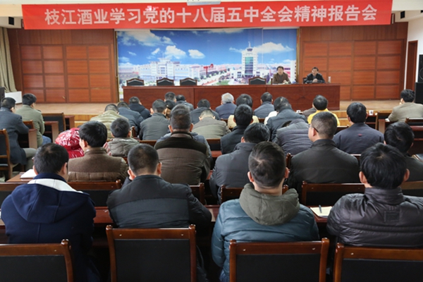12月8日上午,枝江酒業(yè)舉辦“黨的十八屆五中全會精神宣講報告會”,枝江市委黨校高級講師肖全俊應(yīng)邀為參會的全體黨員和中層以上管理人員作黨…