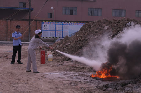 此次演習的宗旨是讓即將進入新車間工作的員工提前熟悉工作環(huán)境,了解新環(huán)境中的消防器材、消防設施的陳列位置及使用方法,加強職工的消防意識,提高職工在緊急情況下的應急能力和自我防護能力。整個演習分為兩個階段,一是讓演習職工參觀新建的包裝車間及灌裝車間,并了解新車間消防器材的存放位置及主要性能;二是由安保部部長黃衛(wèi)國組織參演員工現(xiàn)場演練相關消防器材的使用要領,并檢驗其消防栓、滅火器等消防器材的安全性能。