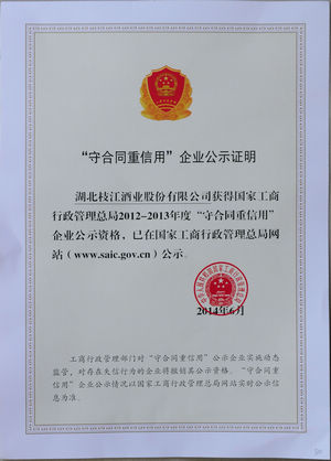枝江酒業(yè)再獲國家級“守合同、重信用”企業(yè)稱號