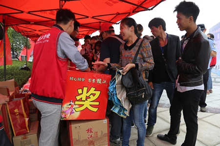 枝江酒業(yè)借用這樣的熱鬧場面,在相親活動(dòng)現(xiàn)場進(jìn)行微信掃碼贈(zèng)酒活動(dòng),吸引了前來參加相親活動(dòng)的各階層人士。在現(xiàn)場展示的產(chǎn)品有枝江王、百年枝江韻系列產(chǎn)品、情義結(jié)、謙泰吉1號(hào)、苦蕎酒等。參與者只要現(xiàn)場關(guān)注枝江酒業(yè)微信公眾號(hào),分享到朋友圈,即可獲得一次抽獎(jiǎng)的機(jī)會(huì),分別會(huì)抽出“十五年經(jīng)典”、“枝江情義結(jié)”、“小金版枝江王”、“小苦蕎酒”等不同價(jià)位的枝江酒。枝江酒業(yè)曾經(jīng)在今年夏天,利用枝江市納涼晚會(huì)舉行微信掃碼贈(zèng)酒活動(dòng),與枝江市民有效互動(dòng),讓枝江人“家家抱得美酒歸”成為酒城風(fēng)景,而在此次相親節(jié)上,在“千年等一回”的浪漫中,“相親抱得美酒歸”又一次成為枝江這座中國白酒名城的風(fēng)景。枝江市婦聯(lián)準(zhǔn)備了豐富的文藝節(jié)目,在舞臺(tái)的大屏幕上,重復(fù)播放著枝江酒業(yè)出品的《酒城之戀》畫面,有一位現(xiàn)在枝江工作的外地小伙子說,希望能在枝江收獲一段像《酒城之戀》中的愛情故事。