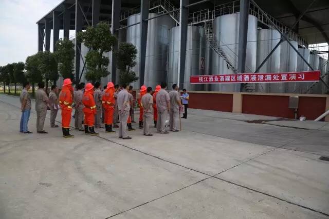 隨著一聲令下,現(xiàn)場警戒組、管道堵漏組、沙袋堵漏組、射水稀釋組進(jìn)入罐區(qū)展開應(yīng)急處置……6月23日上午8時30分,一場緊張有序的酒罐區(qū)域酒液泄漏處置演習(xí)在枝江酒業(yè)五萬噸灌裝中心舉行。此次演習(xí)旨在提高酒庫員工對酒體泄漏的應(yīng)急處置能力,檢驗(yàn)公司微型消防站戰(zhàn)斗人員的實(shí)戰(zhàn)技能,增強(qiáng)全員安全意識。