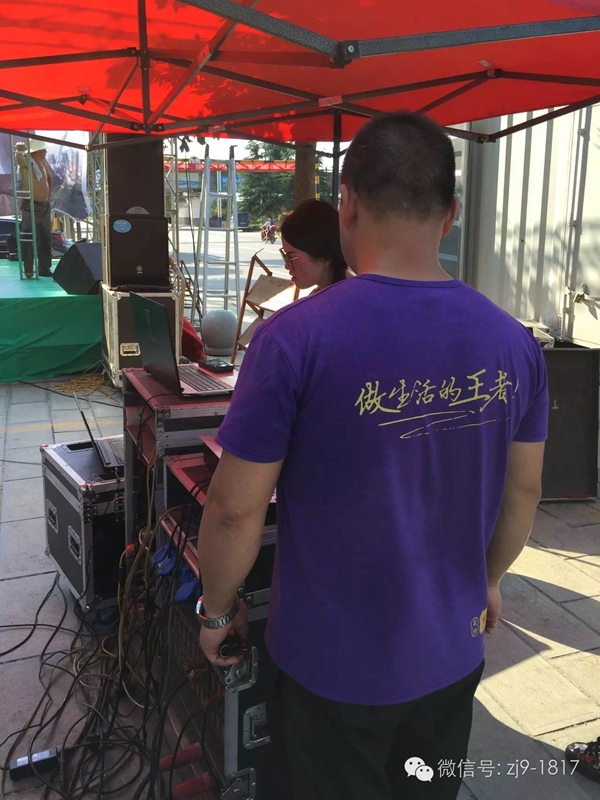 工作人員冒高溫準(zhǔn)備演出現(xiàn)場(chǎng)