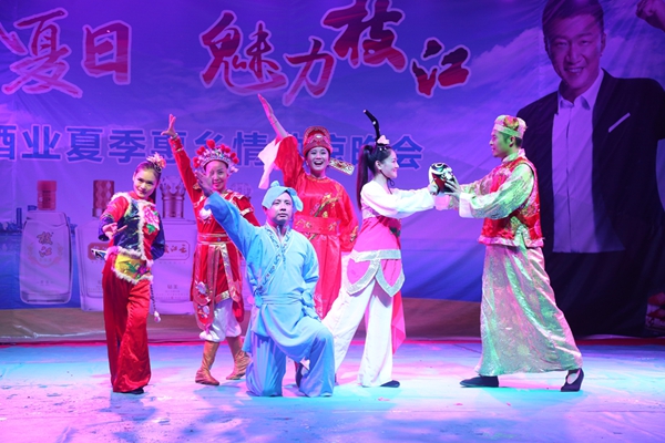 7月28日,枝江酒業(yè)“動感夏日 魅力枝江”鄉(xiāng)村行之情滿問安文藝匯演在問安金泉廣場舉行。精彩的文藝節(jié)目,有趣的互動游戲,吸引了前來納涼的問安群眾?!爸谱鳛榕c枝江這個地名同名的本地品牌,不斷發(fā)展壯大期間,始終立足于枝江,與家鄉(xiāng)人民同輝煌共患難,同時更是得到了政府和家鄉(xiāng)人民的大力支持。濃濃家鄉(xiāng)情 回報桑梓心,今天,為了回饋家鄉(xiāng)父老,枝江酒業(yè)人不僅為大家?guī)砹撕每吹奈乃嚬?jié)目,同時也為大家?guī)砹烁鞣N福利,希望在這個炎炎夏日為您帶來一絲清涼” 隨著主持人的開場白,納涼晚會正式拉開序幕。