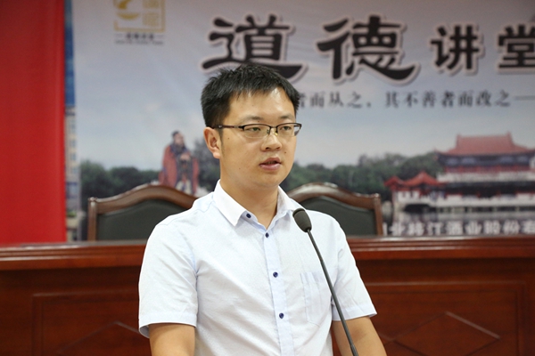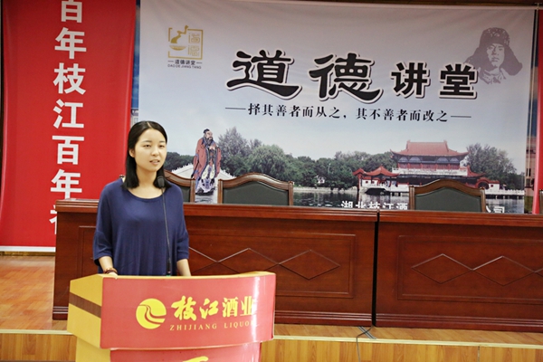 一滴酒香承載一個品牌夢,一個品牌崛起一座文明城。枝江市被授予“中國白酒名城”稱號,可以說枝江酒功不可沒?!白屩瞥蔀橹袊鴼v史文化名酒并享譽(yù)全球”,這是枝江酒業(yè)的愿景,也是每一個枝江酒業(yè)人的夢想與期盼。此次“道德講堂”活動共分為六個環(huán)節(jié),分別是“唱歌曲、看短片、誦經(jīng)典、講故事、談感悟、提建議”。