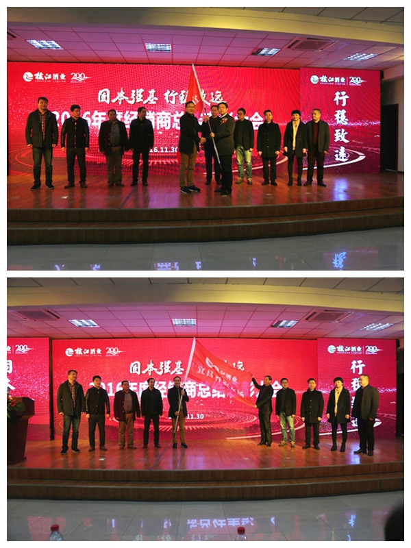11月30日,枝江酒業(yè)在科技大樓召開(kāi)2016年度經(jīng)銷商總結(jié)表彰大會(huì),來(lái)自全國(guó)的200多名重點(diǎn)經(jīng)銷商歡聚一堂,共謀“枝江”新發(fā)展,共創(chuàng)品牌新紀(jì)元。枝江酒業(yè)董事長(zhǎng)蔣紅星、總裁曹榮開(kāi),常務(wù)副總經(jīng)理譚崇堯、副總經(jīng)理劉前生、李凈、亓新明、銷售總經(jīng)理侯先圣等公司高管出席會(huì)議,會(huì)議由該公司黨委書(shū)記張華主持。
