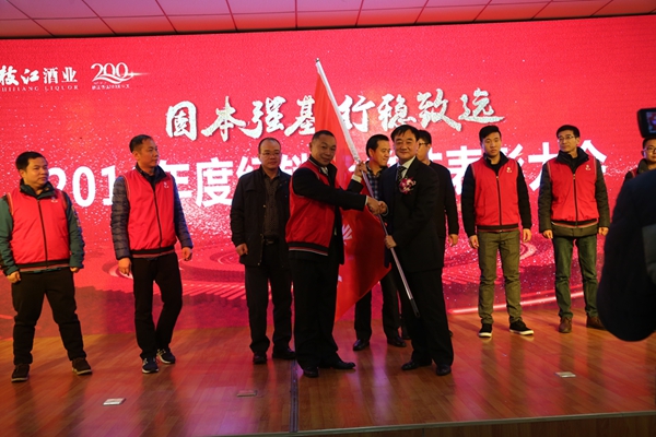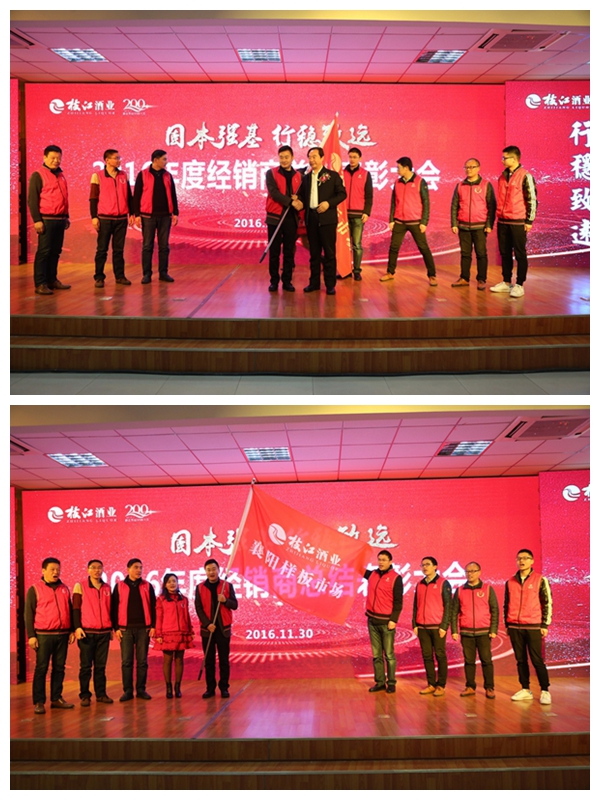 2016年是枝江酒業(yè)伴隨行業(yè)發(fā)展變化而深度調(diào)整的一年,是面對(duì)壓力克難奮進(jìn)的一年,是廠商協(xié)力穩(wěn)步向前的一年,也是枝江酒業(yè)實(shí)施大單品戰(zhàn)略的第一年。2016年在廠商共同努力下,全國(guó)各地涌現(xiàn)出了一批貢獻(xiàn)突出、成長(zhǎng)迅速、轉(zhuǎn)型發(fā)展、推新績(jī)優(yōu)、精誠(chéng)合作的經(jīng)銷商代表,通過(guò)銷售財(cái)務(wù)的數(shù)據(jù)對(duì)比和全面評(píng)估,經(jīng)公司研究決定,授予鄧州福泉商貿(mào)有限公司等四家單位為2016年度突出貢獻(xiàn)獎(jiǎng);授予枝江市新富貴酒行等四家單位為2016年度新品推廣獎(jiǎng);授予安陸市昌盛名酒商行等四家單位為2016年度精誠(chéng)合作獎(jiǎng);授予武漢市蔡甸區(qū)本來(lái)副食商店等四家單位為2016年度營(yíng)銷轉(zhuǎn)型獎(jiǎng);授予桐柏金達(dá)貿(mào)易有限公司等四家單位為2016年度高速成長(zhǎng)獎(jiǎng)。